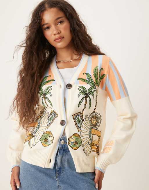Never Fully Dressed cardigan in palm embroidery