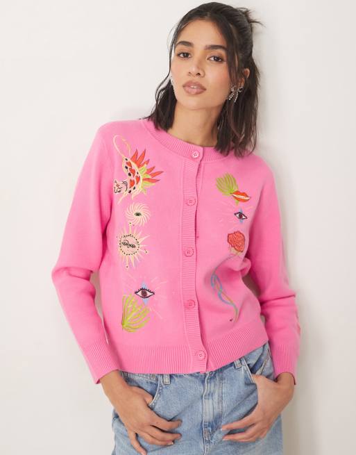 Never Fully Dressed embroidered cardigan in pink