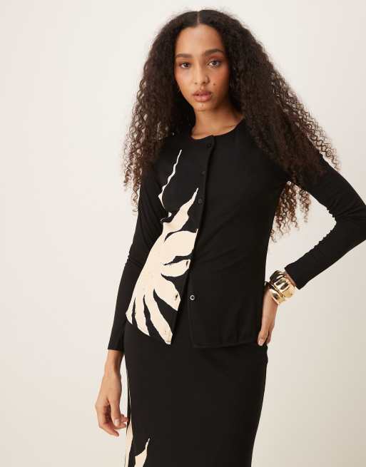 Never Fully Dressed fitted cardigan co-ord in black oversized floral