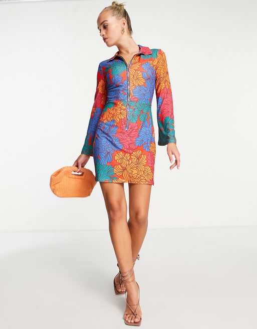 Never Fully Dressed fluted sleeve zip mini dress in bold abstract floral