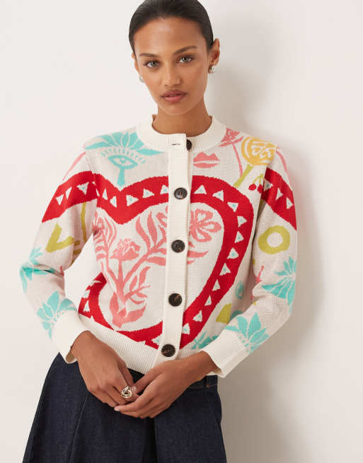 Never Fully Dressed knitted crew neck cardigan in bright graphic print