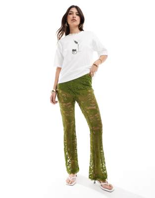 Never Fully Dressed lace trouser in olive co-ord