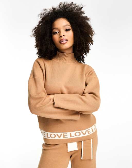 Never Fully Dressed LOVE knitted jumper co-ord in camel