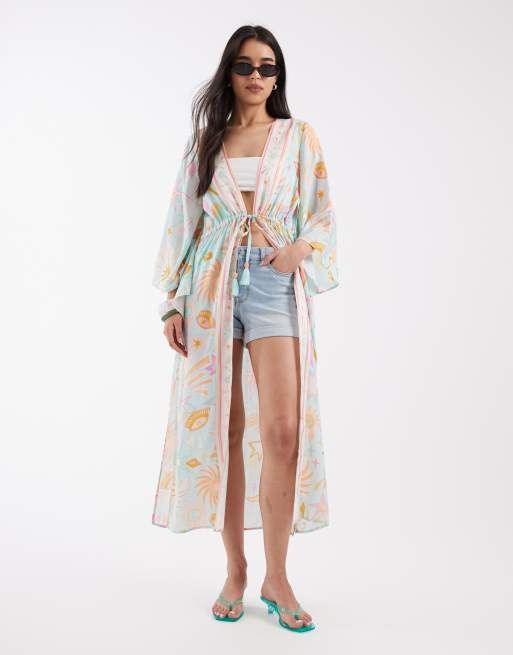 Never Fully Dressed maxi kimono beach cover up in orange sun print