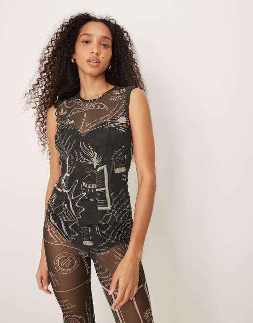 Never Fully Dressed mesh top shirt co-ord in black palm print
