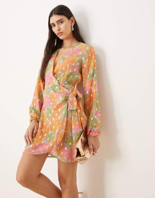 Never Fully Dressed metallic wrap mini dress in multi-colour