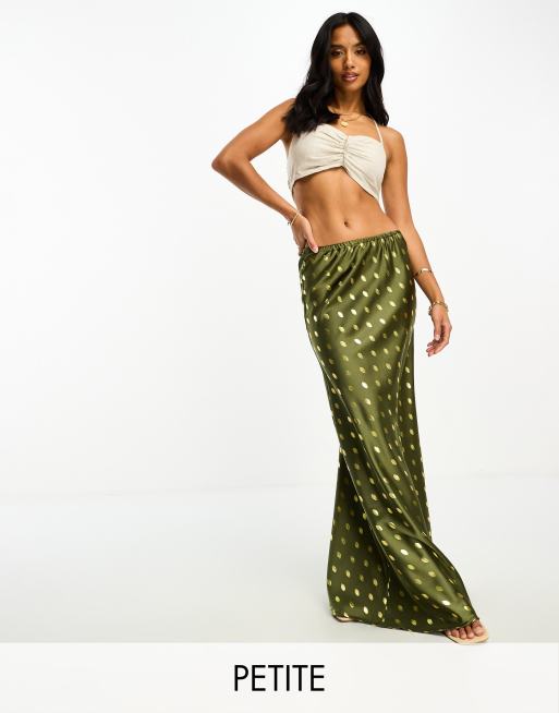 Never Fully Dressed Petite gold fleck satin maxi skirt in khaki