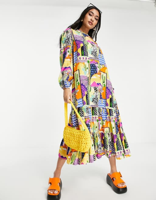Never Fully Dressed retro cactus print midi dress in multi