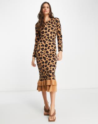 Never Fully Dressed ruffle knit midi dress in leopard print