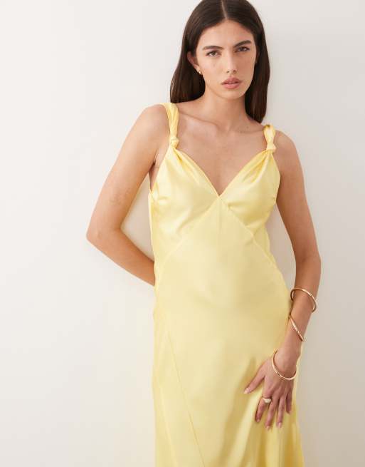 Never Fully Dressed Sofia satin knot strap bias cut maxi dress in lemon