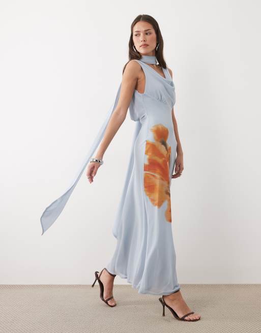 Never Fully Dressed Sophie cowl neck maxi dress with oversized floral in ice blue