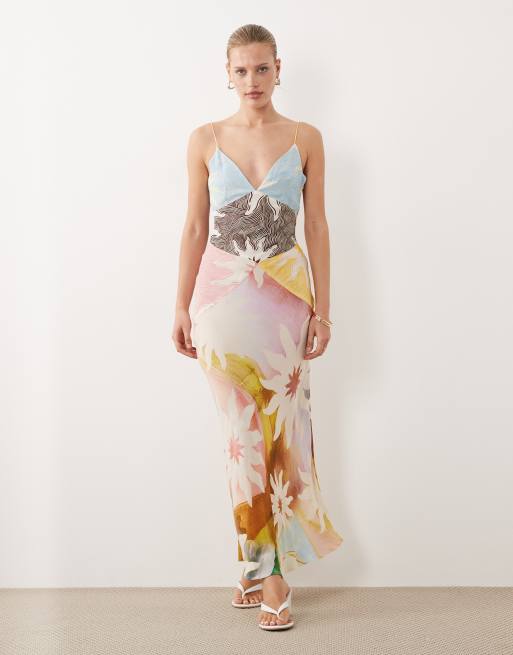 Never Fully Dressed Valeria satin cami maxi dress in pastel soleil print