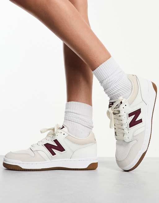 New Balance 480 trainers in white & burgundy