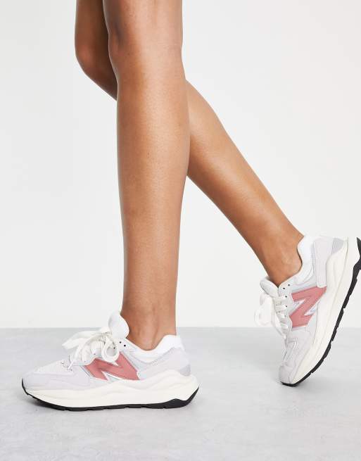 New Balance 57/40 suede trainers in light grey and red