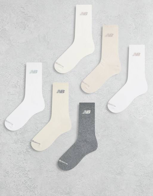New Balance 6 pack everyday crew socks in light neutrals