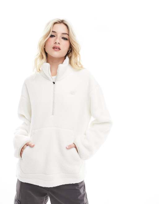 New Balance Achiever sherpa pullover in white