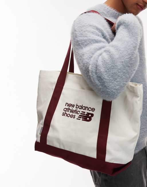 New Balance canvas tote bag in off white and burgundy