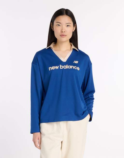 New Balance Mesh jersey long sleeve t-shirt in dark blue