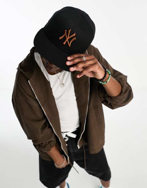 New era 9fifty NY cap in black with orange logo