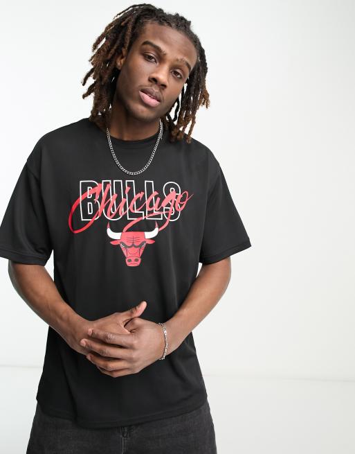 New Era Chicago Bulls script mesh t-shirt in black
