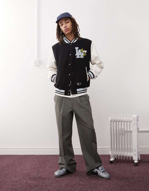 New Era LA Dodgers floral contrast embroidered varsity jacket in multi