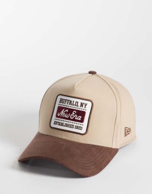 New Era logo patch cap with suede contrast peak in brown