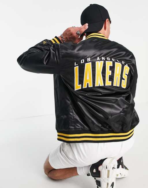 New Era NBA LA Lakers satin bomber jacket in black