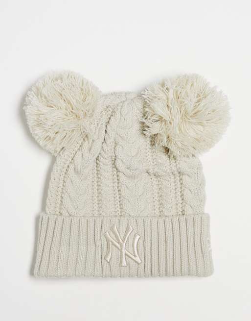 New Era NY Yankees double pom beanie in beige cable knit