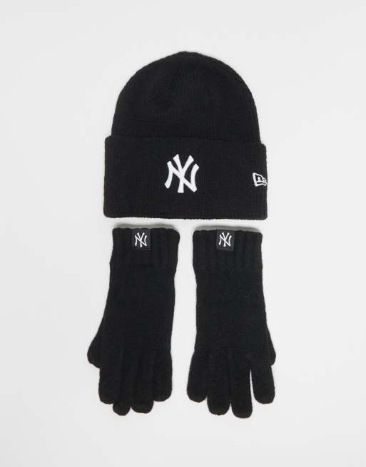New Era NY Yankees knit beanie and gloves set in black
