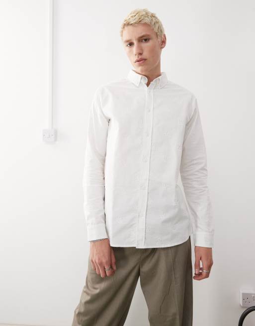 New Era NY Yankees mini logo embroidery long sleeve shirt in cream