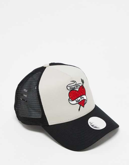 New Era rhinestone heart trucker cap in black