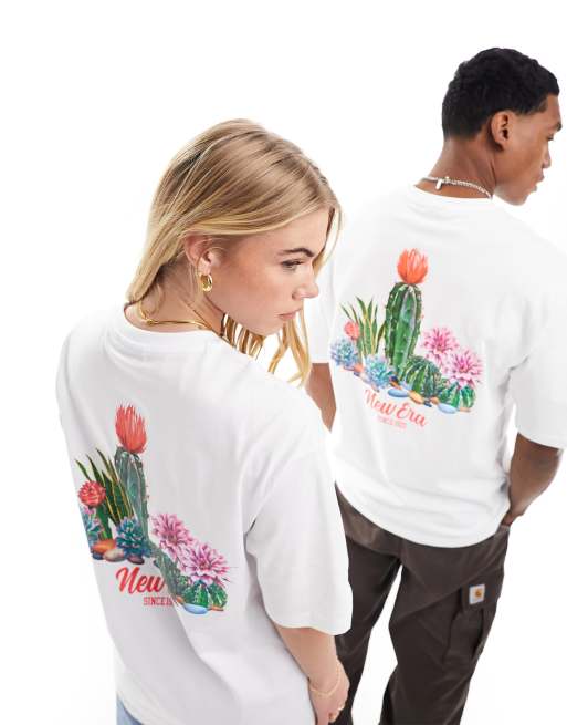 New Era unisex cactus graphic t-shirt in white