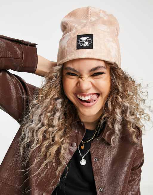 New Girl Order logo badge ribbed beanie in oatmeal tie dye