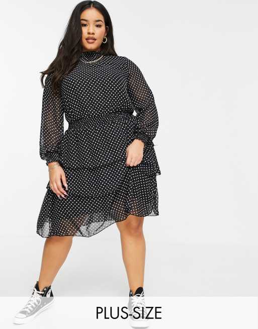 New Look Plus shirred ruffle mini dress in spot