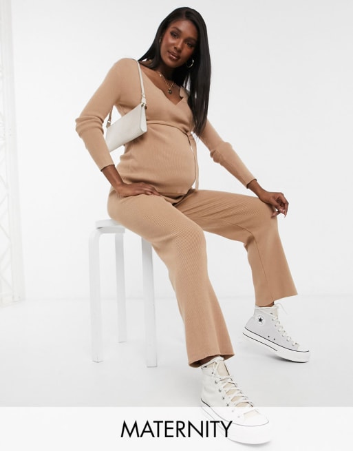 New Look Maternity knitted top and trouser co-ord in camel