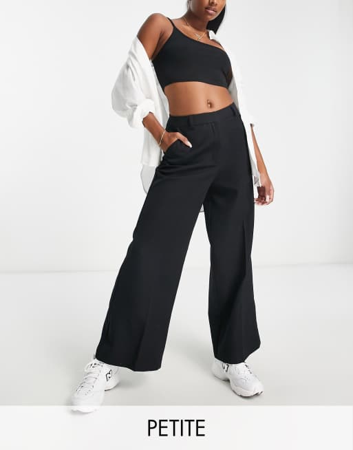 New Look Petite wide leg dad trouser in black