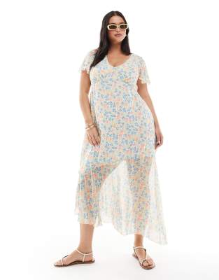 New Look Curve asymmetric v neck midi dress in floral print