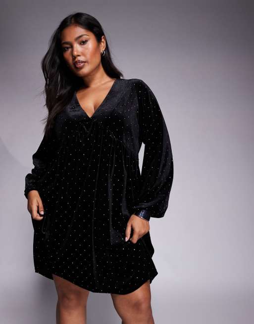 New Look Curve hotfix v neck smock mini dress in black