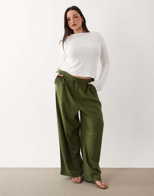 New Look Curve linen blend wide leg trousers in green