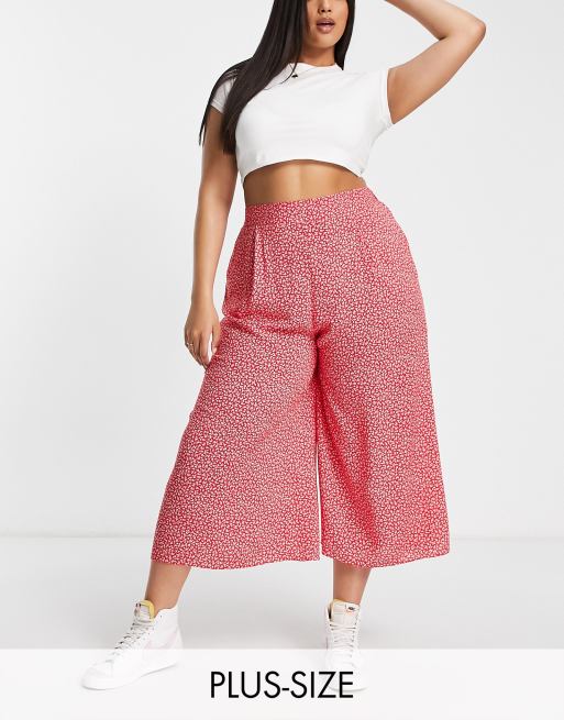 New Look Curve wide leg cropped trouser in red ditsy floral