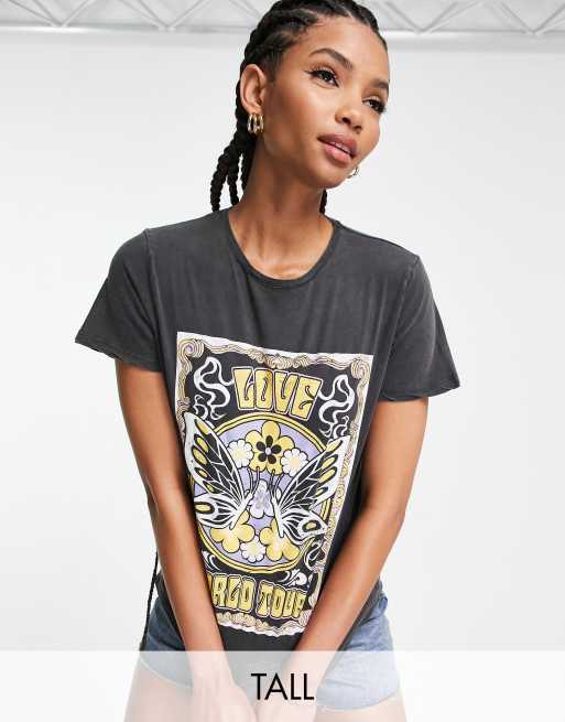 New Look Tall acid wash graphic tee in charcoal grey