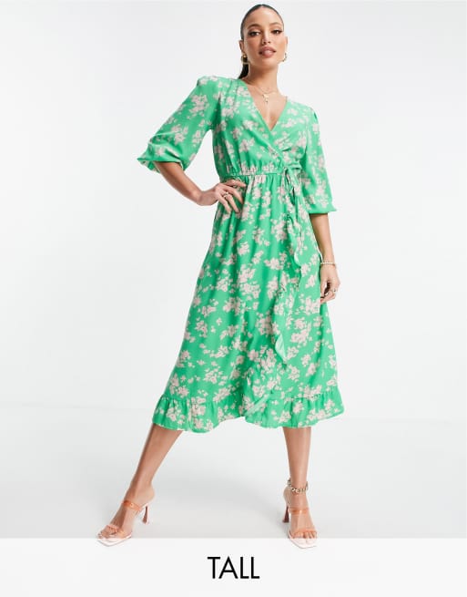 New Look Tall floral wrap midi dress in green pattern