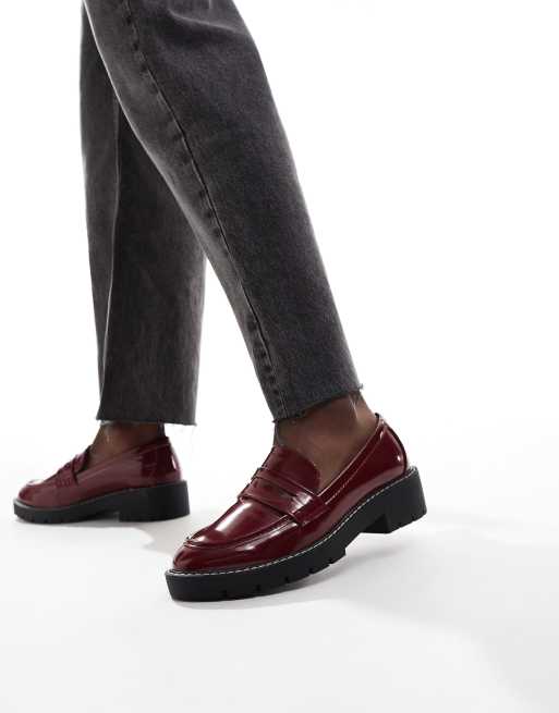 New Look Wide Fit chunky loafer with stitching in burgundy