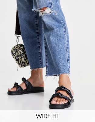 New Look Wide Fit knotted flat sandal in black