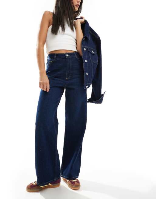 New Look Adalae high waisted wide leg jeans in dark blue