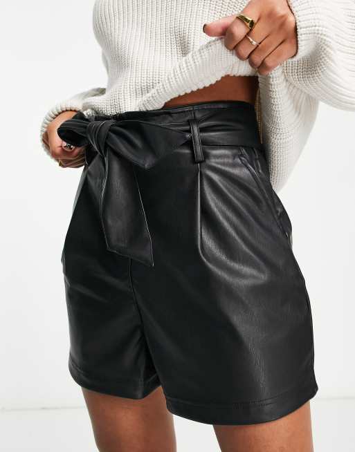 New Look belted faux leather shorts in black