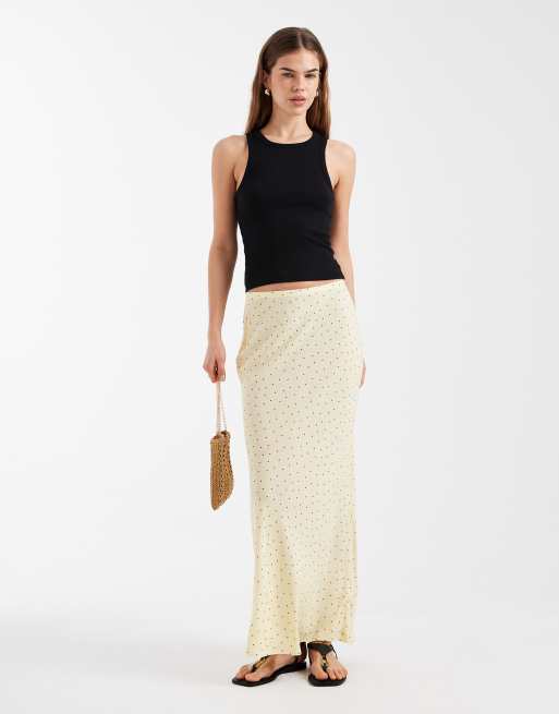 New Look bias midi skirt in yellow polka dot