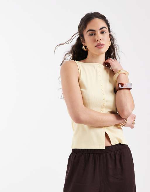 New Look boat neck button through tank top in yellow