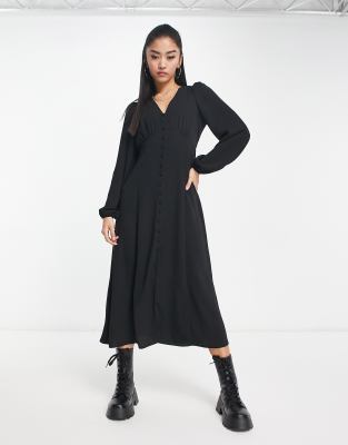 New Look button front long sleeved tea dress in black