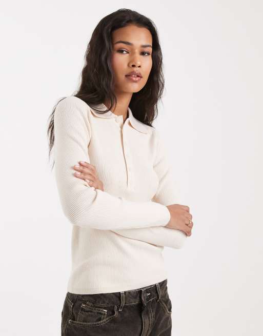 New Look button polo knitted top in cream
